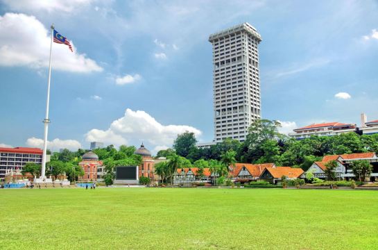 ▲ 绿草如茵的独立广场是对马来西亚具有重要历史价值的地方。1957年8月31日,马来西亚脱离英国统治而独立。现该升旗地点则矗立着一支高100英尺的旗杆,位于广场的南端,来自世界各地的游客都会到此欣赏这根旗杆,以纪念这个历史时刻。