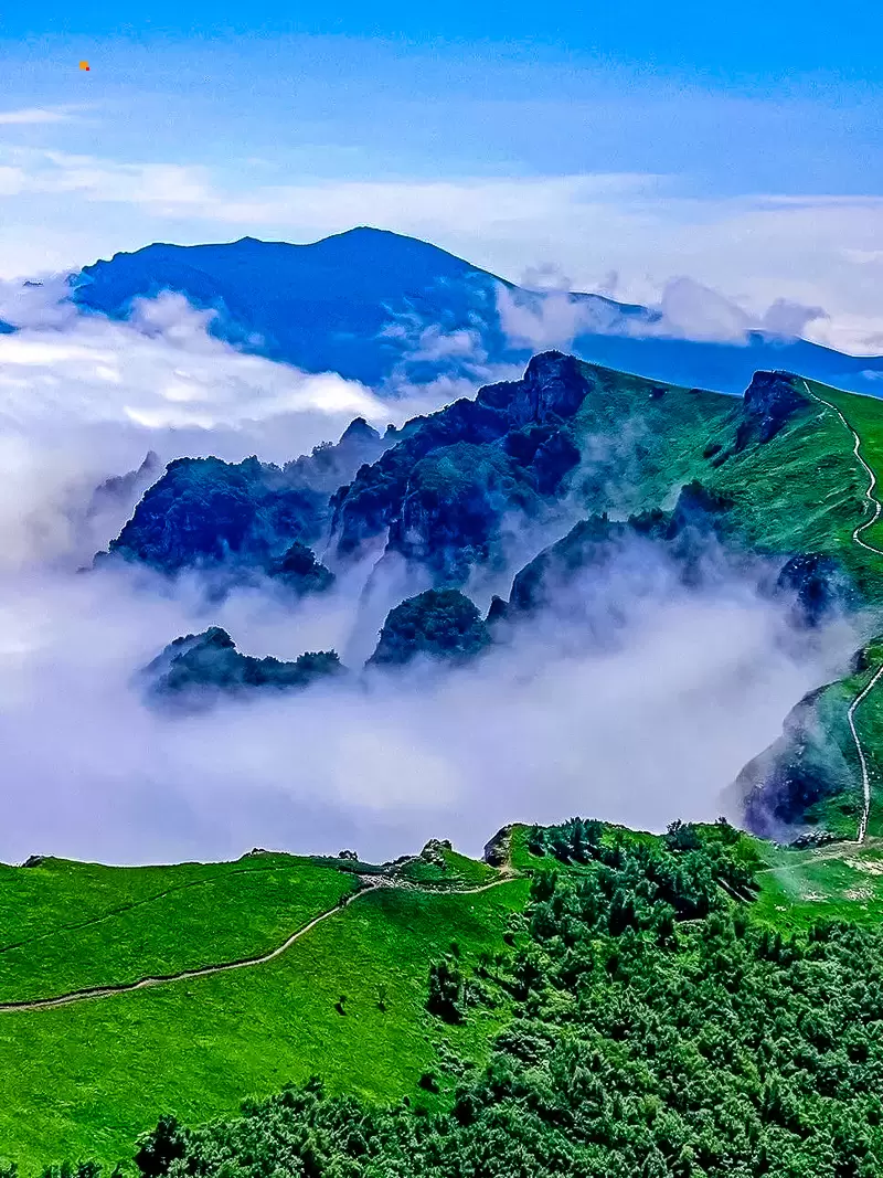 灵山风景区的主峰在海拔2303米处,就区域范围而言,它是北京的第一座山峰,与周围的灵山风景区一道,形成了北京地区的“顶岭”山系网。灵山作为北京的“屋顶山脊”,在人眼中充满了魔力和向往。灵山风景名胜区面积25平方公里,以其雄伟的山峰、种类繁多的野生花卉、广袤的高山草甸和丰富的野生动物资源而闻名于世。如果气候交替,浓雾和水汽会使山顶隐约出现,显得比晴天更隐秘,远望远方,看上去都有神山的感觉。如果此时您正好在灵山峡谷行走,那么您将能够在最近的距离上体验灵山的灵气。