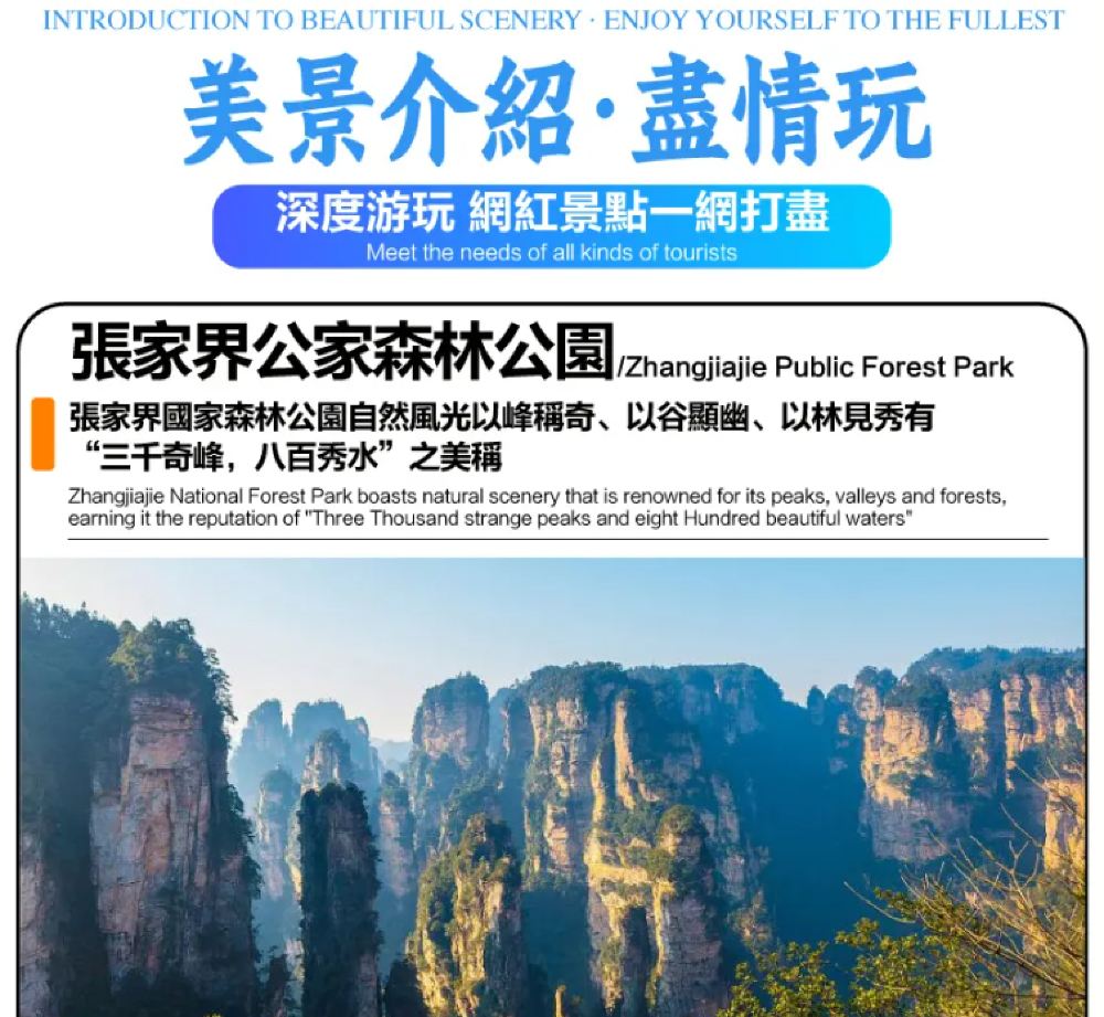 - 景点门票:百龙天梯+百龙天梯VIP+天子山索道+十里画廊小火车(不强制性消费)
