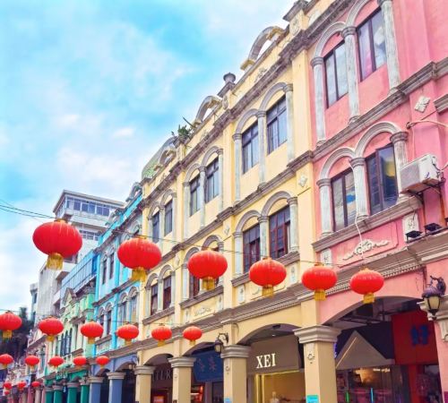 ▲ 这条步行街全长约635米,街道两旁保留着明末清初风格的岭南骑楼建筑。这些建筑以粉黄、粉绿、粉蓝等柔和的色彩为主色调,连绵的骑楼和复古的招牌让整条街道充满了浓郁的南洋风情,非常适合拍照打卡。