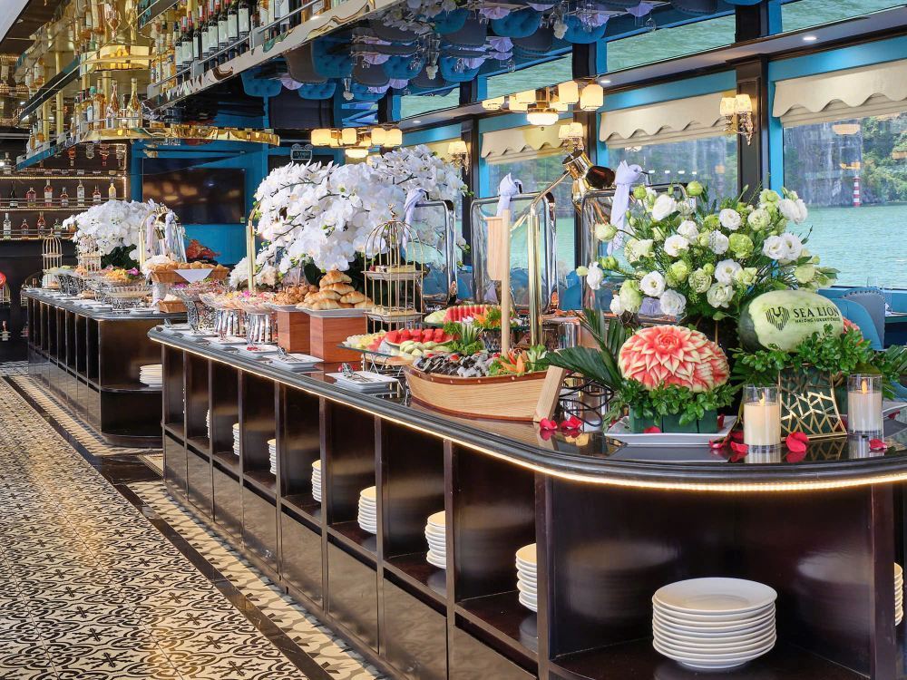 ▲ 搭乘从河内出发的“海狮”豪华五星级一日游,体验下龙湾的壮丽景色。这趟全日游包含往返直通车、高级海鲜自助午餐以及船上设施,例如令人放松的按摩浴缸。非常适合寻求舒适、时尚、难忘美景的高端下龙湾一日游的游客。