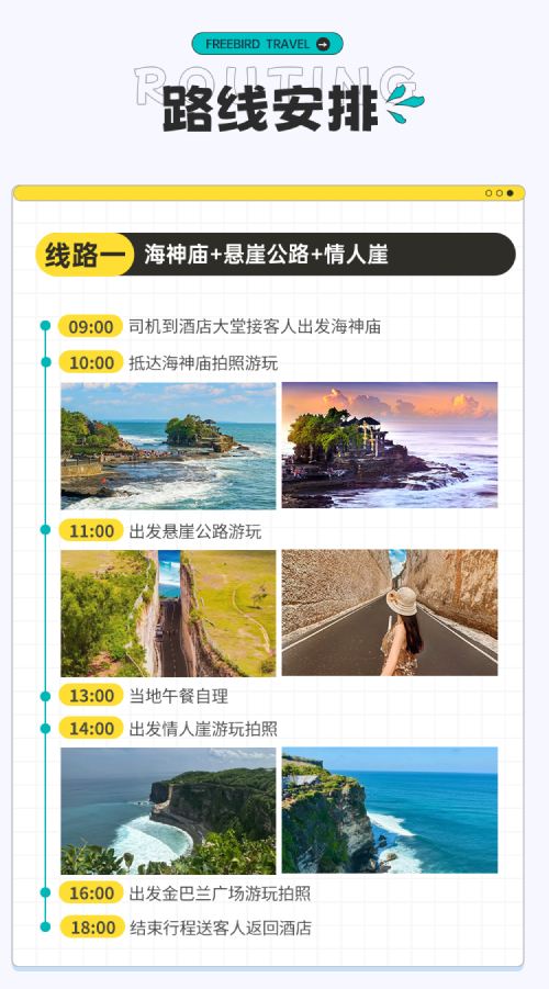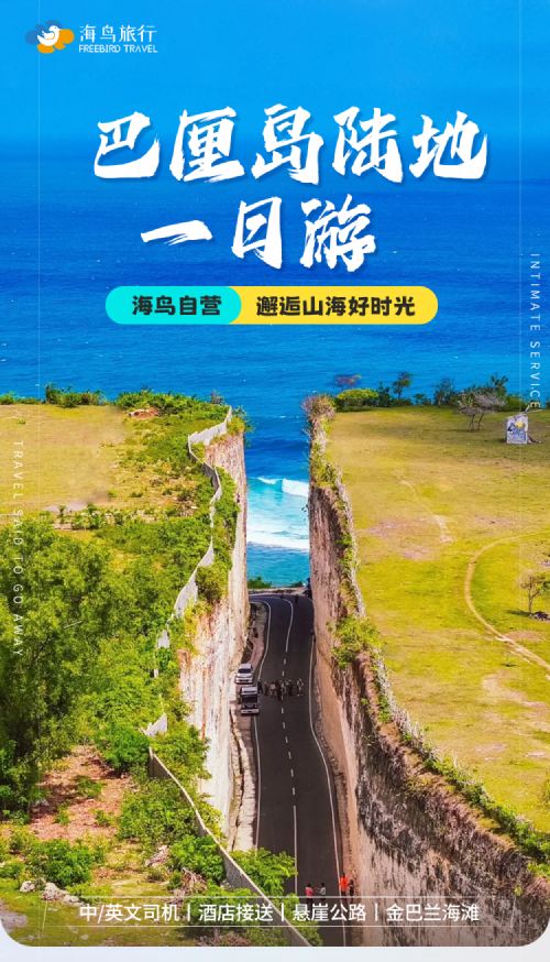 巴厘岛一日游丨可选海神庙/情人崖/悬崖公路/金巴兰沙滩/乌布【[缤纷景点]乌鲁瓦图情人崖浪漫相遇-金巴兰海滩出片日落-悬崖公路奇特体验】