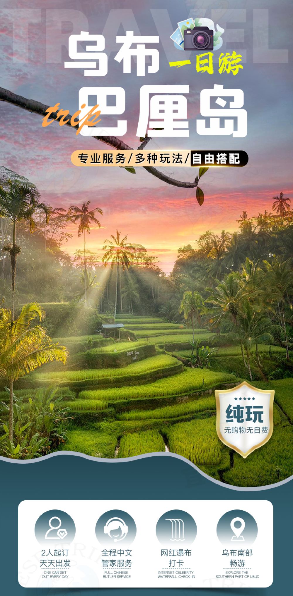 巴厘岛乌布一日游 地接乌布包车/梯田/漂流+ATV/天空之门【【小众出片打卡】网红秋千、网红瀑布、皇家花园、神庙逃亡ins风打卡地均可选择!】