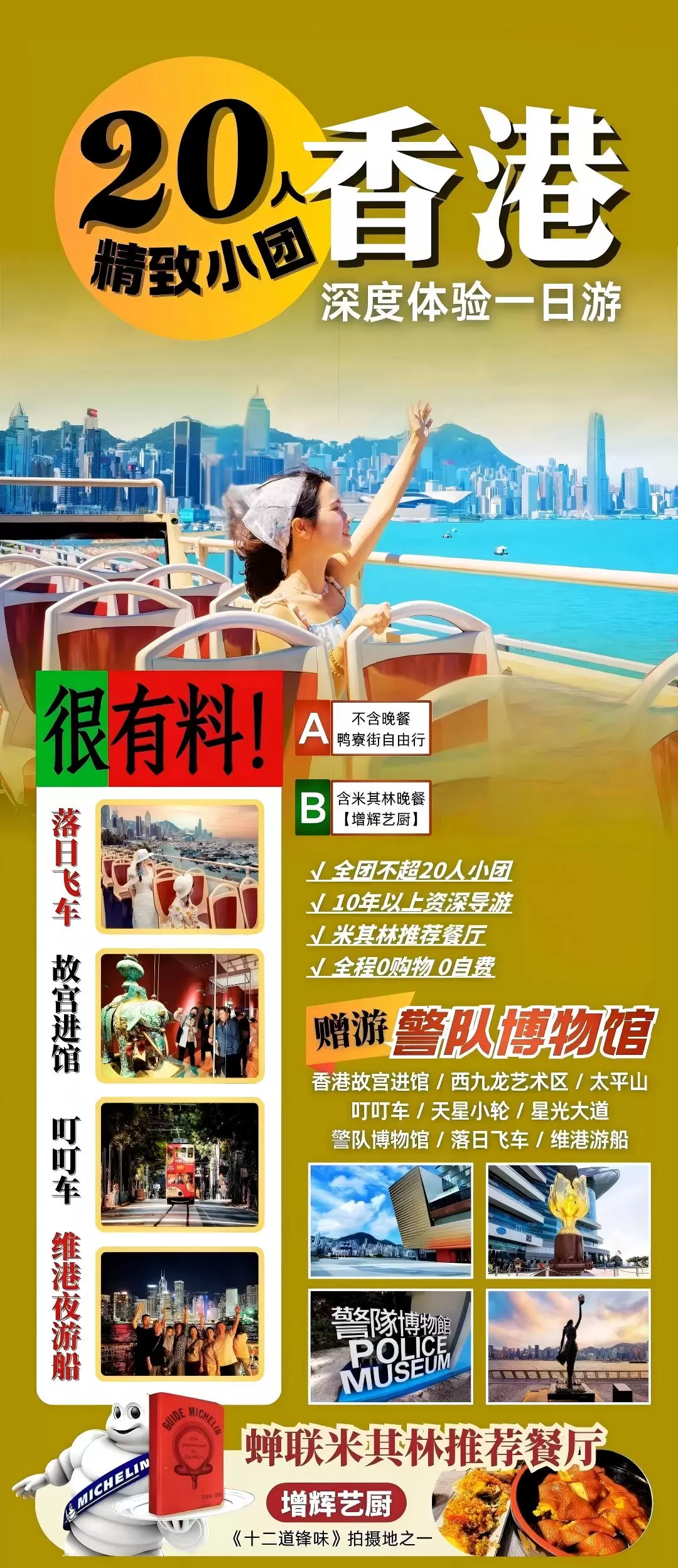 香港故宫+落日飞车+叮叮车+维港夜游船纯玩一日游【20人小团,赠上网卡丨含泉章居午餐/增辉艺厨晚餐丨珠海往返】
