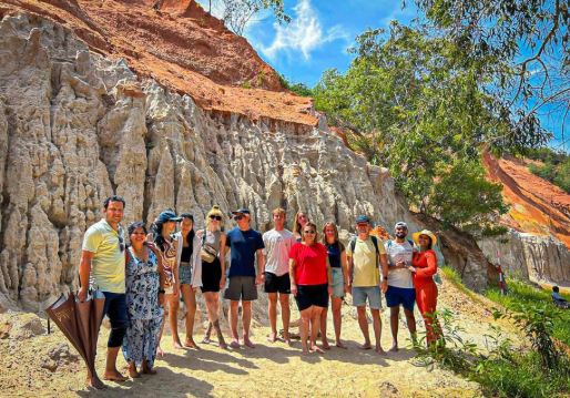 -10:00 抵达美奈后,参观翁迪亚岩(Bai Da OngDia)--一个风景如画的沿海景点,拥有独特的岩石地貌和海景,非常适合放松和拍摄美丽照片。