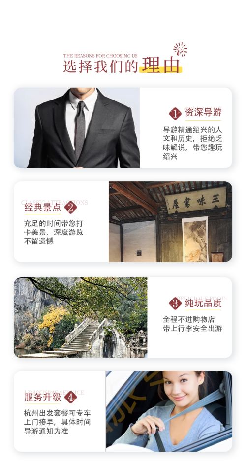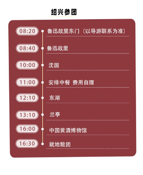 本行程赠送游览绍兴黄酒博物馆。赠送景点如有特殊原因不能前往,无费用可退,请知晓。五一、十一、春节等法定节假日期间,因各景区人多排队时间太长,赠送景点可能无法安排,敬请谅解