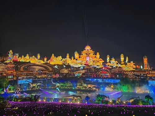 本届灯会的标志性灯组极具视觉张力:35 米高的 “华结映门” 实现正背面视觉统一;210 米长的 “神奇华夏” 萃取鲲鹏意象,彰显民族豪情;22 米高的 年兽灯组搭载 AI 交互系统,可与游客趣味互动。