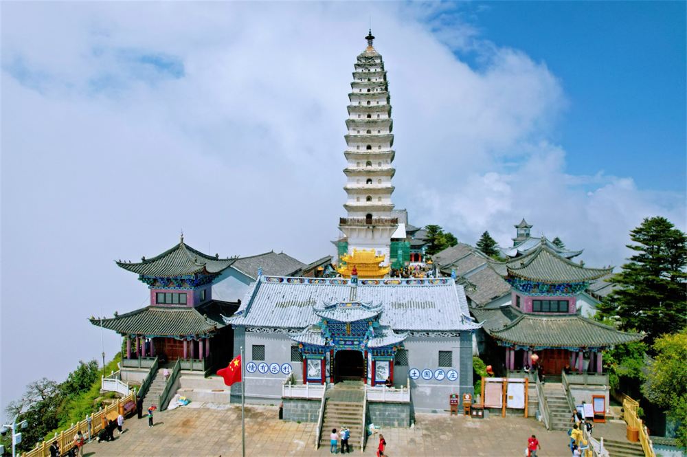 【14:30】乘坐[观光车]+【索道】到达金顶,游览【金顶寺】,【金殿】
