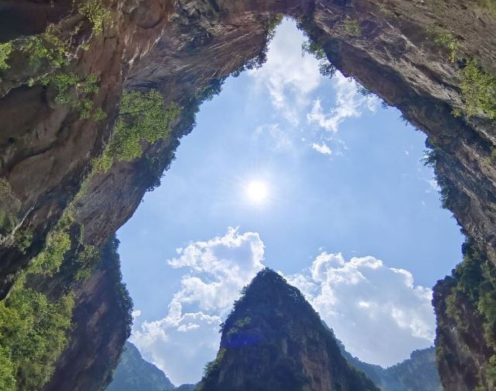 2500米的游船+3000米的索道+可以翻越13座大山+景交车往返+天空之城+208米的垂直电梯!畅游水、陆、空全景!
