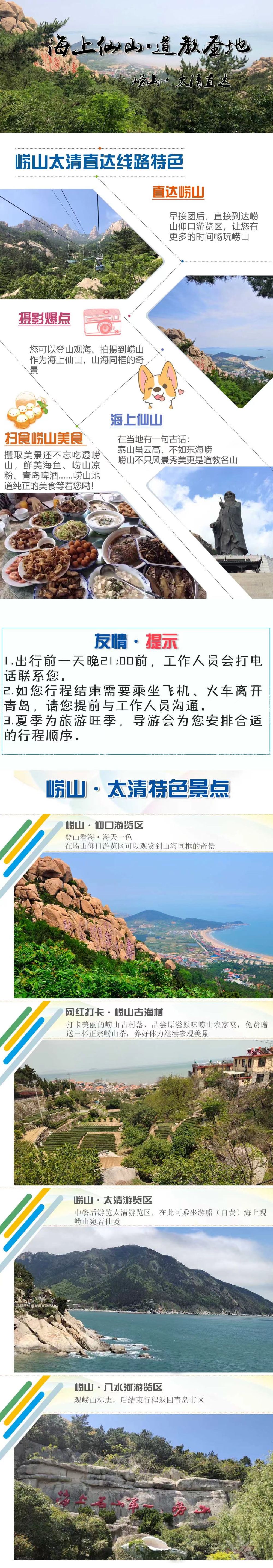 青岛崂山仰口+太清+青山渔村+环海路+八水河【儿童免费!】【[特别省心]市区酒店上门接,专车进山不用换乘压力,精致出游一站式服务让您更放心】