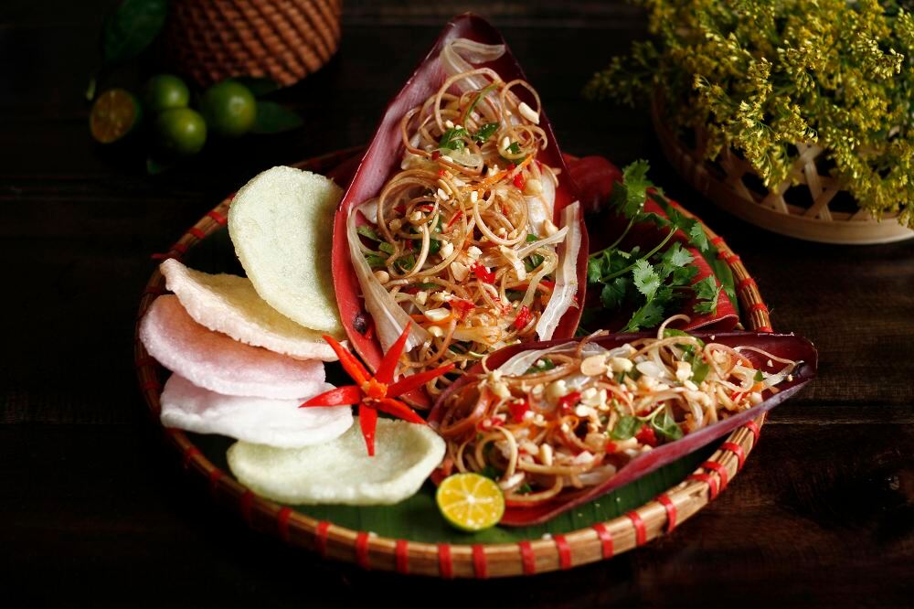 由新鲜香蕉花、蔬菜和香草制成的特别开胃菜。