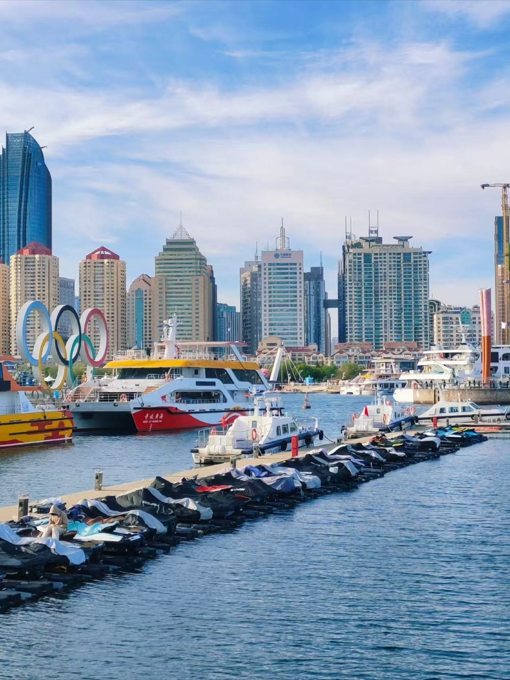 ▲ 奥帆中心——奥运帆船遗产与现代港湾风情的交融之地,扬帆碧波之上,夜幕下灯光璀璨,尽显青岛的活力与浪漫