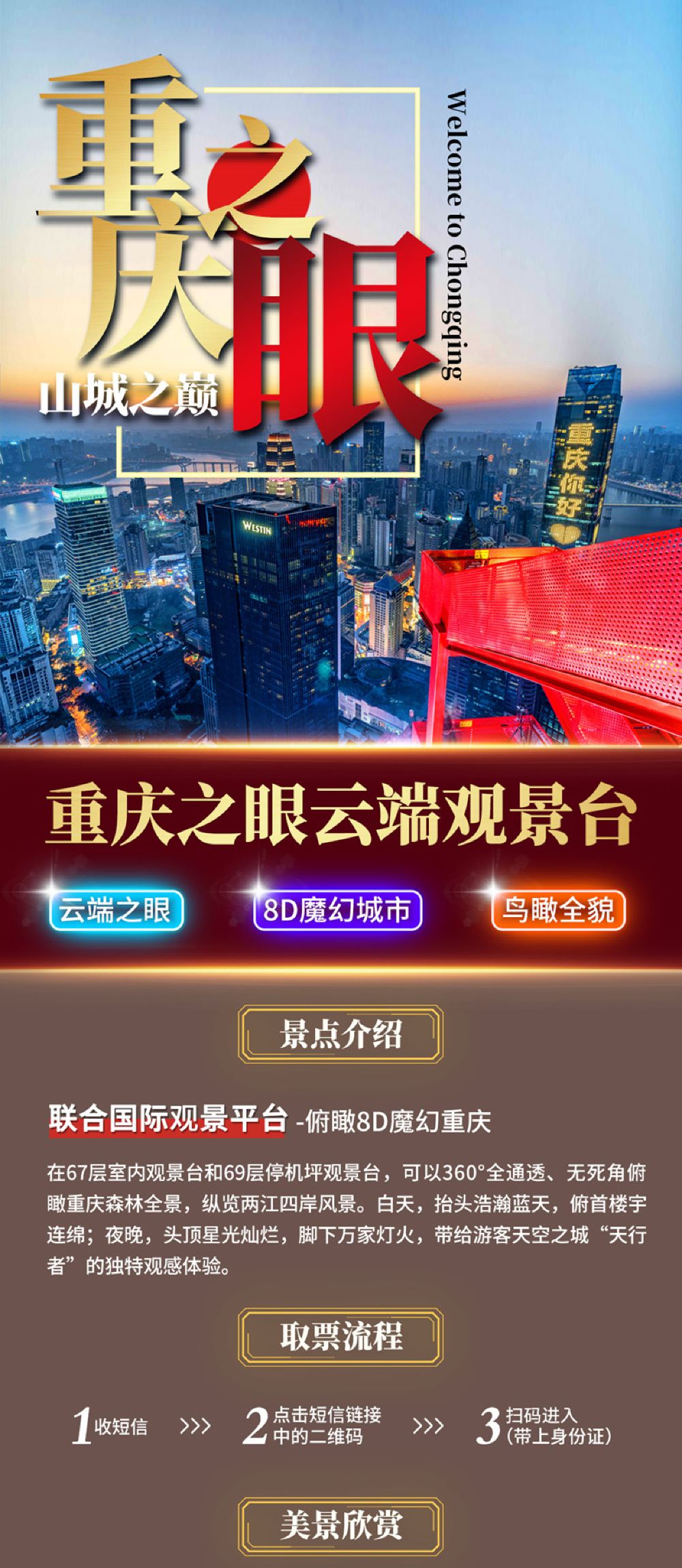 重庆云端之眼观景台【自由行+360度高空观景 俯瞰渝中半岛】【免取票,二维码扫码入园】