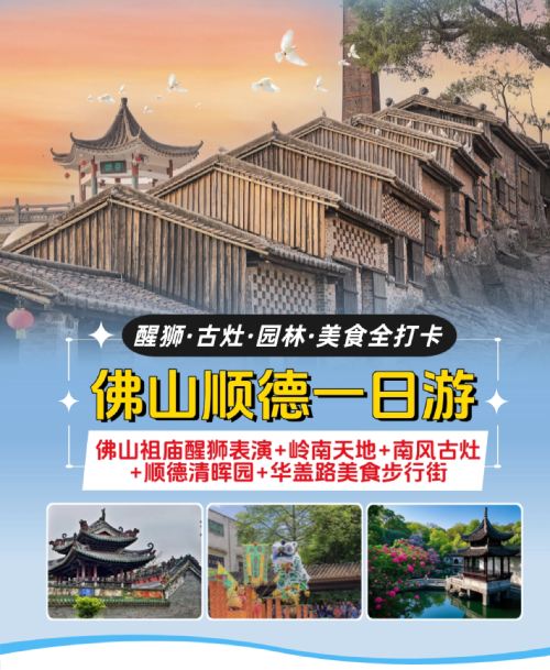 私家小团上门接送+佛山顺德一日游|醒狮+古灶·园林·美食打卡【私家旅行:一单一团,不拼客,专属旅行; 品质服务:车上门接送,专职司机护航】