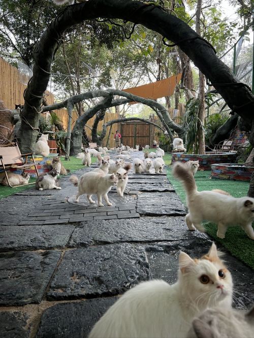 ▲ 该主题乐园占地约3万平方米,以流浪猫救助为核心,收容曾遭遗弃或受伤的猫咪,经过专业治疗与疫苗接种后,向游客开放互动。乐园还兼具公益领养与文旅属性,打造开放型领养平台,通过合规运营实现“以园养猫”,吸引众多市民、游客前来参观、互动与“打卡”。