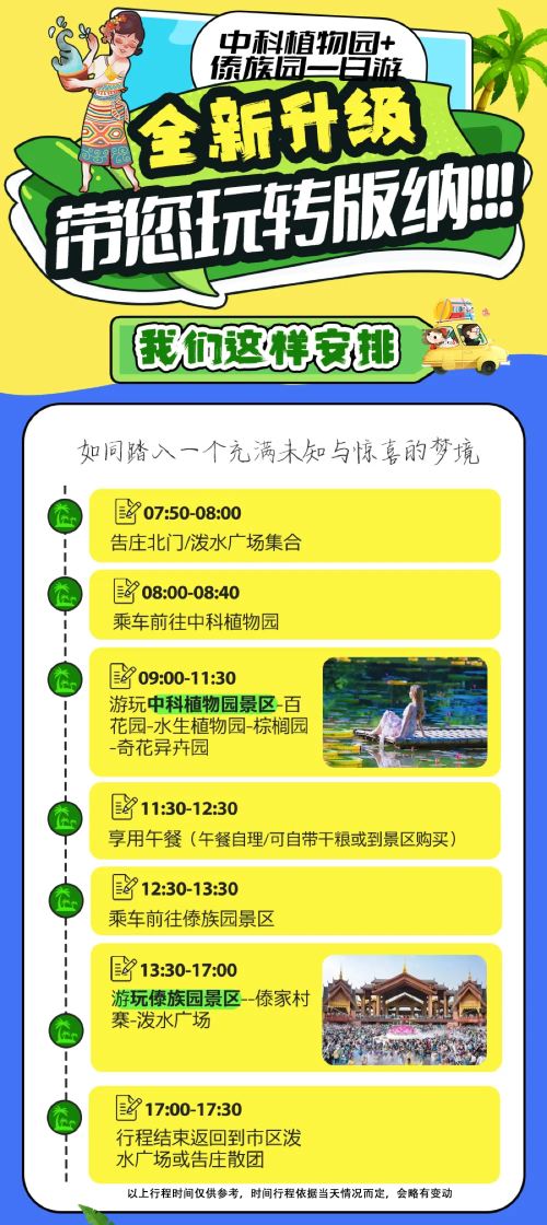 中科院热带植物园+傣族园一日游可选15人团+真纯玩不进店【[版纳故事官]带咱们边看边听,深度游玩!让雨林的美景养眼,让尘封的故事入味,一次旅行,收获双重享受。】