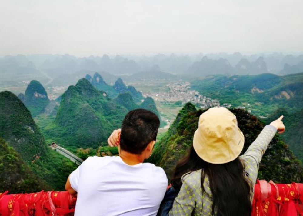 ▲ 在酒店大堂与经验丰富的导游会面,准备踏上激动人心的冒险之旅。您可以选择从阳朔或桂林出发。 您的第一站将是如意峰,在这里,您可以饱览阳朔的壮丽全景,并领略桂林独特的喀斯特地貌。如意峰风景区拥有三座主峰:元宝峰、项链峰和如意峰。乘坐缆车登顶后,您将被喀斯特山脉、蜿蜒河流和一望无际的葱郁森林的壮丽景色所吸引。您可以尽情沉浸在周围的自然美景中,呼吸清新的山间空气,远离城市生活的喧嚣,享受片刻宁静。