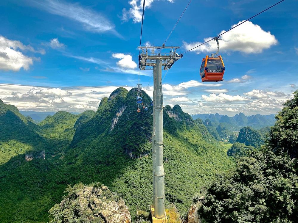 ▲ 抵达后,乘坐缆车前往如意峰顶。1728米长的缆车沿途可欣赏壮丽景色,是拍照的**机会。接下来,您将穿过摇摇欲坠的索桥,并按照当地传统留下一条红腰带,祈求好运。徒步前往山顶的圆形观景台,欣赏更令人叹为观止的阳朔和喀斯特地貌景观。 继续您的冒险之旅,前往项链峰悬崖的东边,在那里您将有机会走在透明的玻璃桥上,体验肾上腺素飙升的刺激。