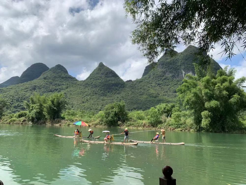 ▲ 然后,前往遇龙河,体验轻松惬意的竹筏漂流。乘坐传统的竹筏,悠闲地沿着宁静的河道漂流,四周环绕着壮丽的景色和宁静的自然风光。竹筏轻轻摇曳,让您沉浸在这片风景如画的土地上,身心放松。这既是放松身心、欣赏桂林自然美景的**方式,也是一次充满乐趣、令人难忘的体验。