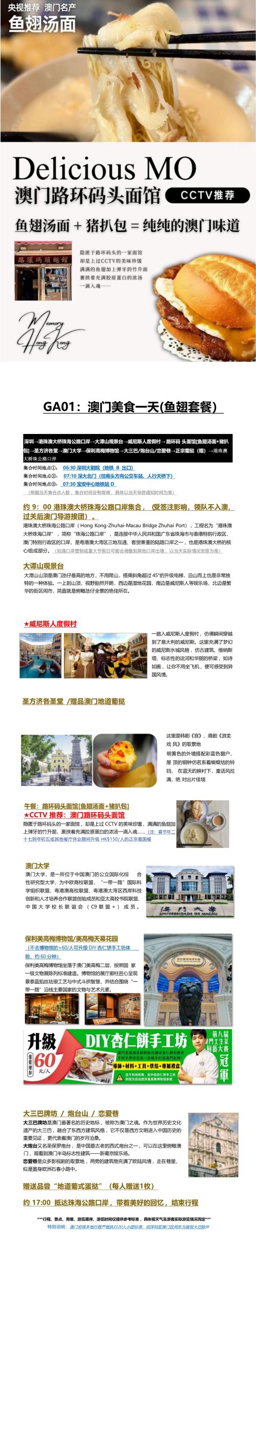 澳门一日游·20人鱼翅餐小团|大三巴+恋爱巷+威尼斯+赠葡挞【[粤港澳旅游专家]深耕粤港澳旅游20年&口碑旅行社多线路可选】