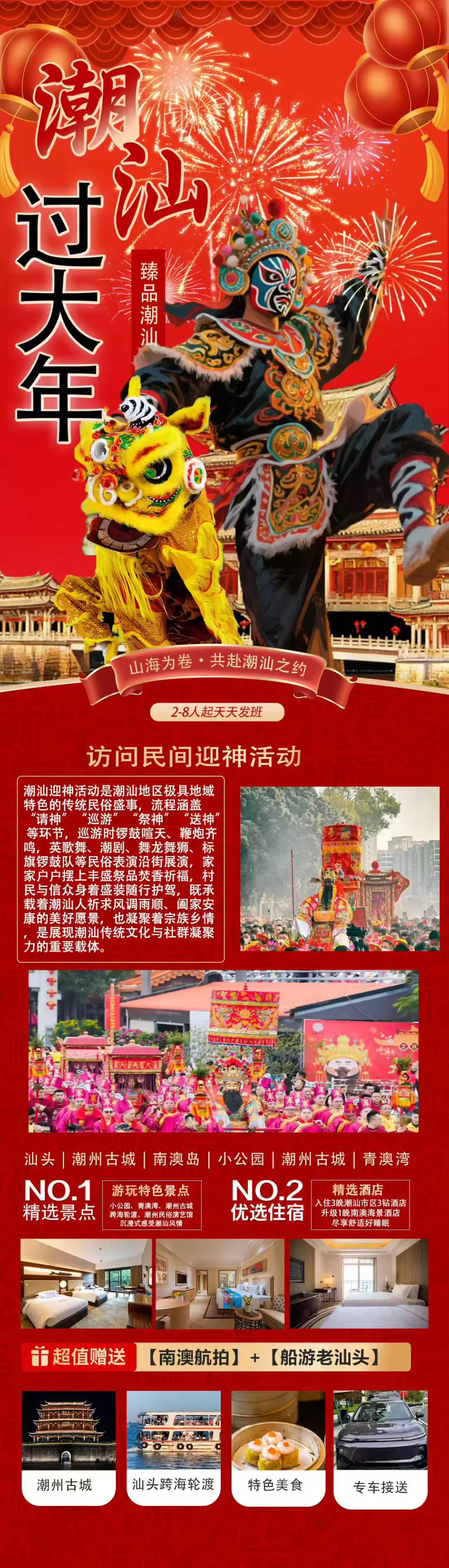 2-8人小团,潮汕过大年丨潮州+汕头+南澳岛5日纯玩【营老爷+英歌舞+出海,全程0购物0擦边丨免费接送机/站】