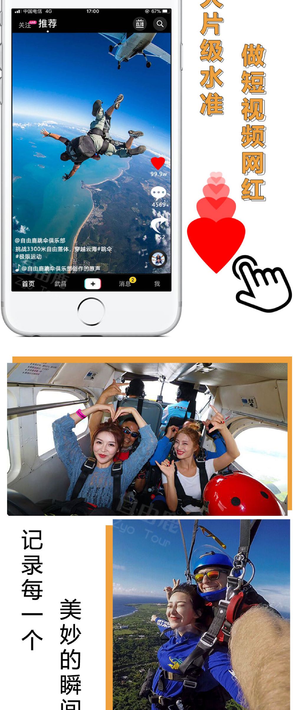 湖北荆门高空跳伞基地【3300米湖景跳伞+高清摄像跟拍】【[刺激嗨玩]3300米高度高空跳伞,高清摄像跟拍】