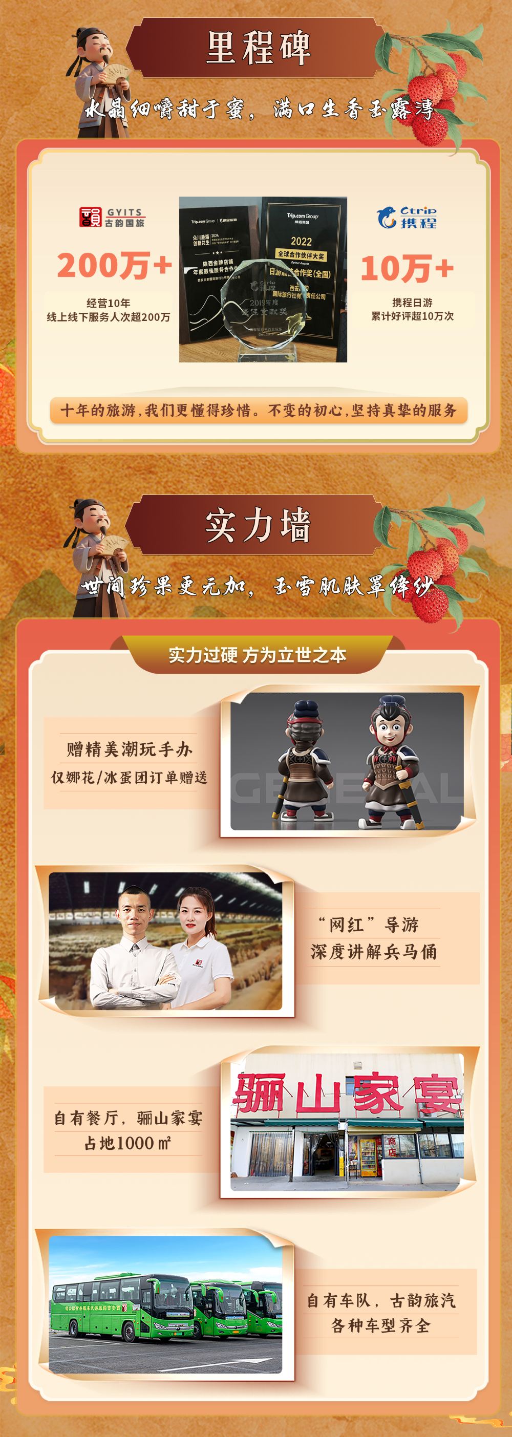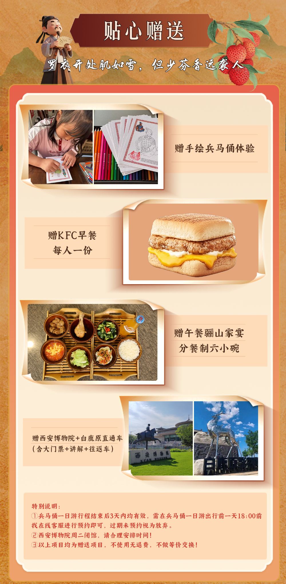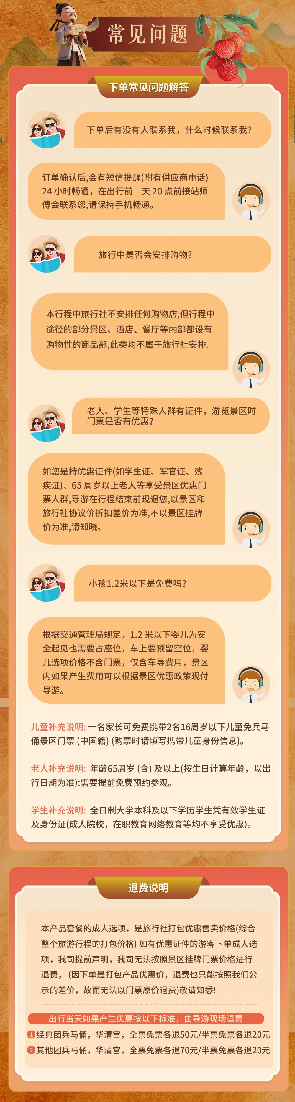 ③长恨歌套餐1.3米以上购买儿童选项;1.3米以下购买婴儿选项,不含长恨歌门票,1.2米以下门票全免,1.2米以上出行当天需补华清宫半票60元。