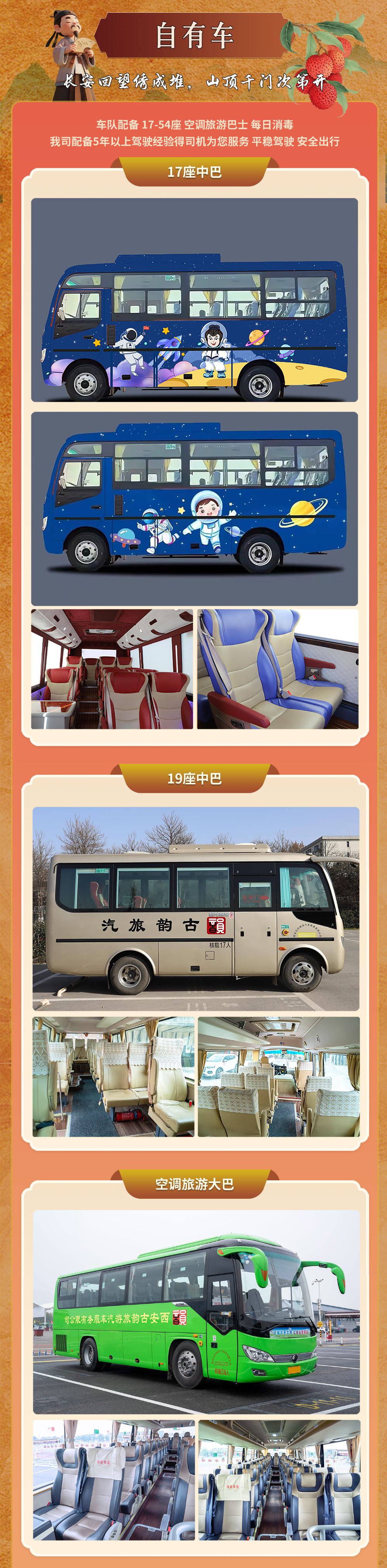 3、据运管及交通法规规定,旅游大巴不允许出现手抱儿童的情况,所有儿童均需收取座位费,以购买座位险,如违规扣6分并处罚金2万-5万。因此,儿童(婴儿)都需要占座位!下单时请告知旅行社是否有小孩跟随,如未提前告知,导致人员超载,司机发现超载拒绝驾驶,同时有权请客人下车!敬请理解 !