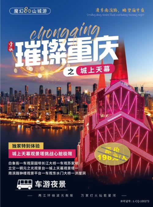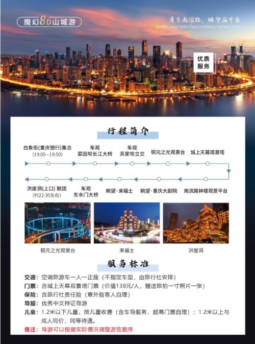 重庆山城夜景夜游导游带队坐旅游大巴 含城上天幕游【打卡重庆两江四岸的夜景。】
