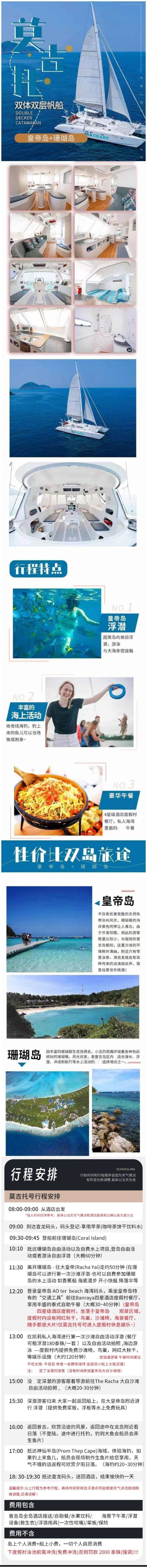 普吉岛皇帝岛+珊瑚岛一日游丨含接送浮潜丨含上岛费丨可加深潜丨【精美帆船,刷爆票圈,水上蹦床、懒人沙发、旅拍,爆炸你的少女心】