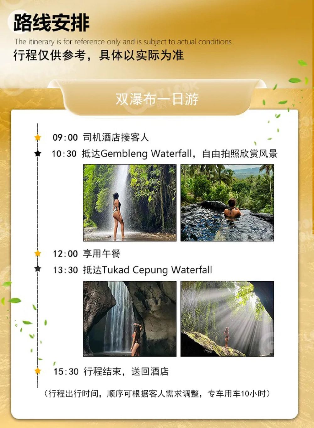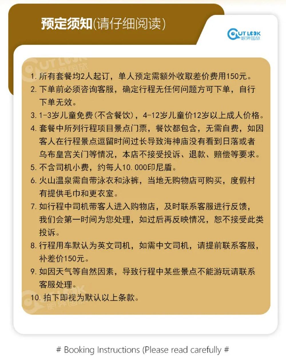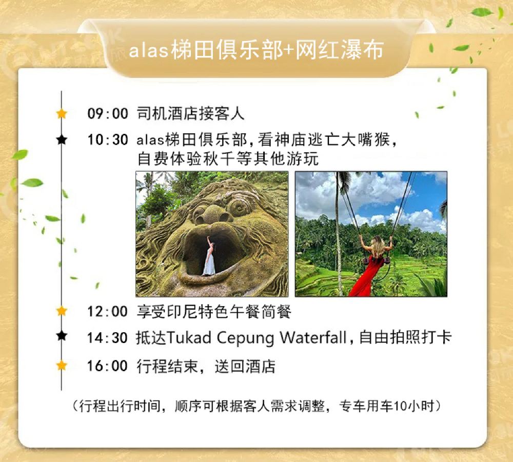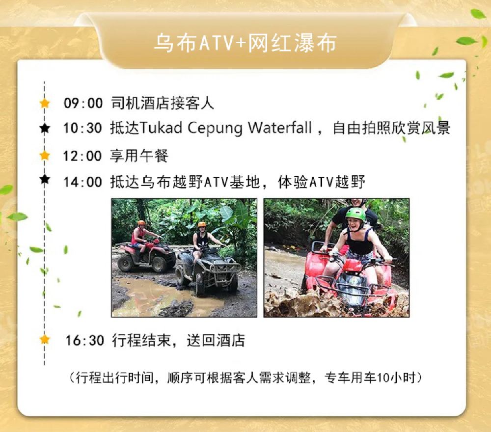 ⑤巴厘岛阵雨,下雨可玩atv,但不负责因天气恶劣、政治动荡、战争活动等原因造成的损失;