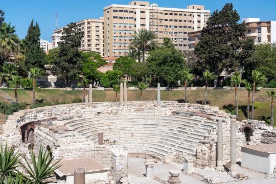 ▲ 该剧场位于Kom El - Dikka遗址挖掘区内,建于公元2世纪,是埃及境内迄今为止发现的一座罗马剧场。剧场呈马蹄形,有13排欧洲大理石座阶环成半圆形,可容纳600名观众,剧场东北面的 “百鸟屋”马赛克镶嵌地板也非常值得一看。