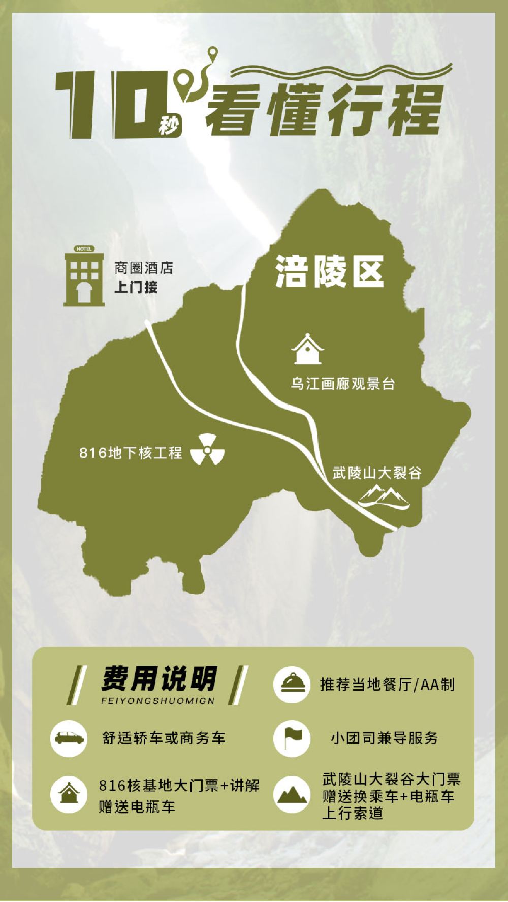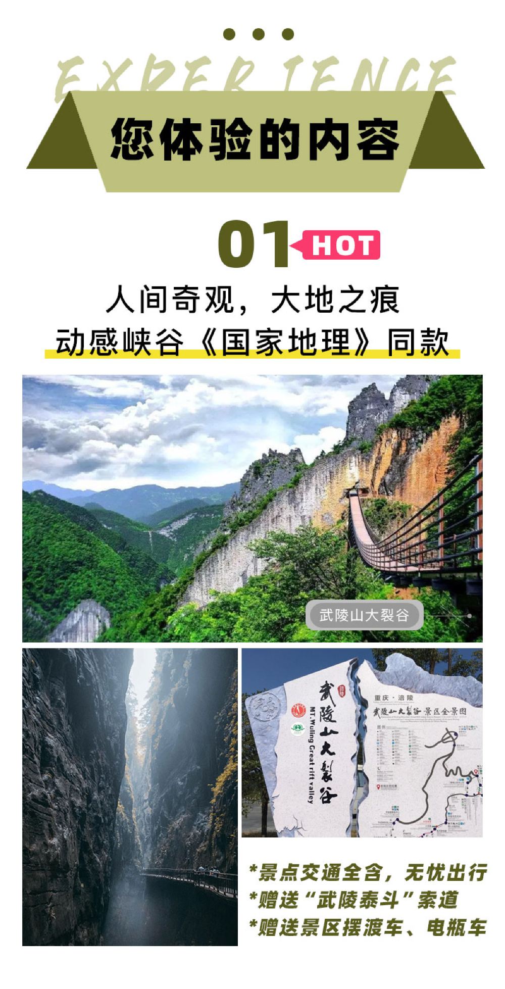 不含武陵山大裂谷景区索道费用(向导代收30元上行索道,下行索道自行购买)