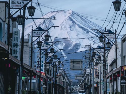 ▲ 富士山天梯小镇,笔直坡道引向山巅,是摄影师私藏的完美取景线,街景自成一幅宁静诗画。