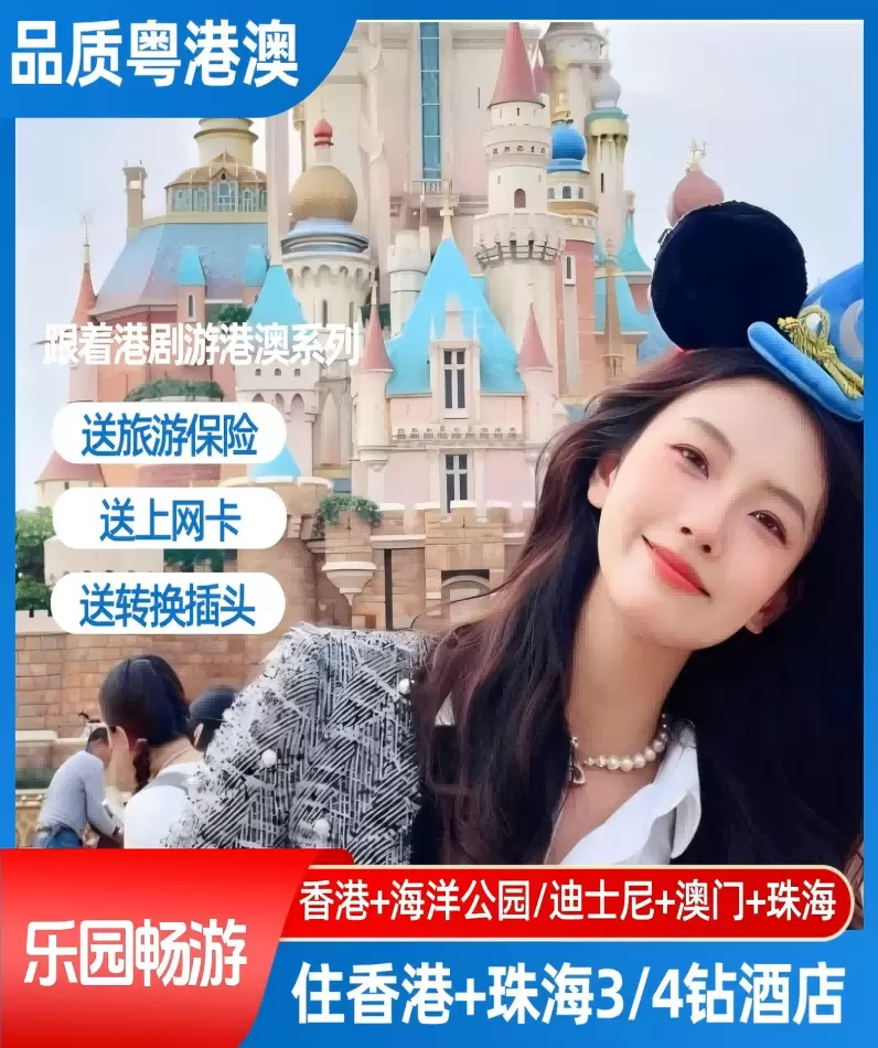 香港+香港海洋公园/迪士尼乐园+澳门+珠海4日游【送上网卡+转换插头丨车观港珠澳大桥丨香港出发】
