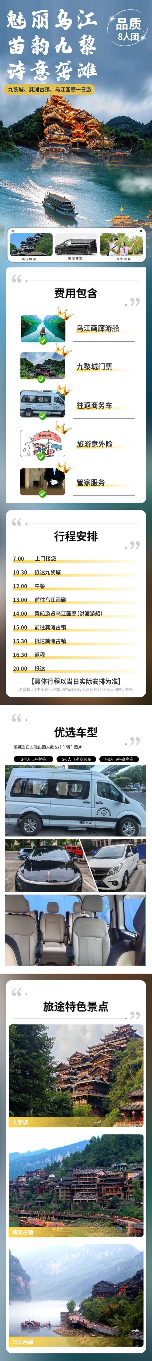 【8人团·坐游船】九黎城+乌江画廊坐游船+龚滩古镇一日游【[安全保障]使用5-9座正规营运车辆出行,为您的安全保驾护航;】