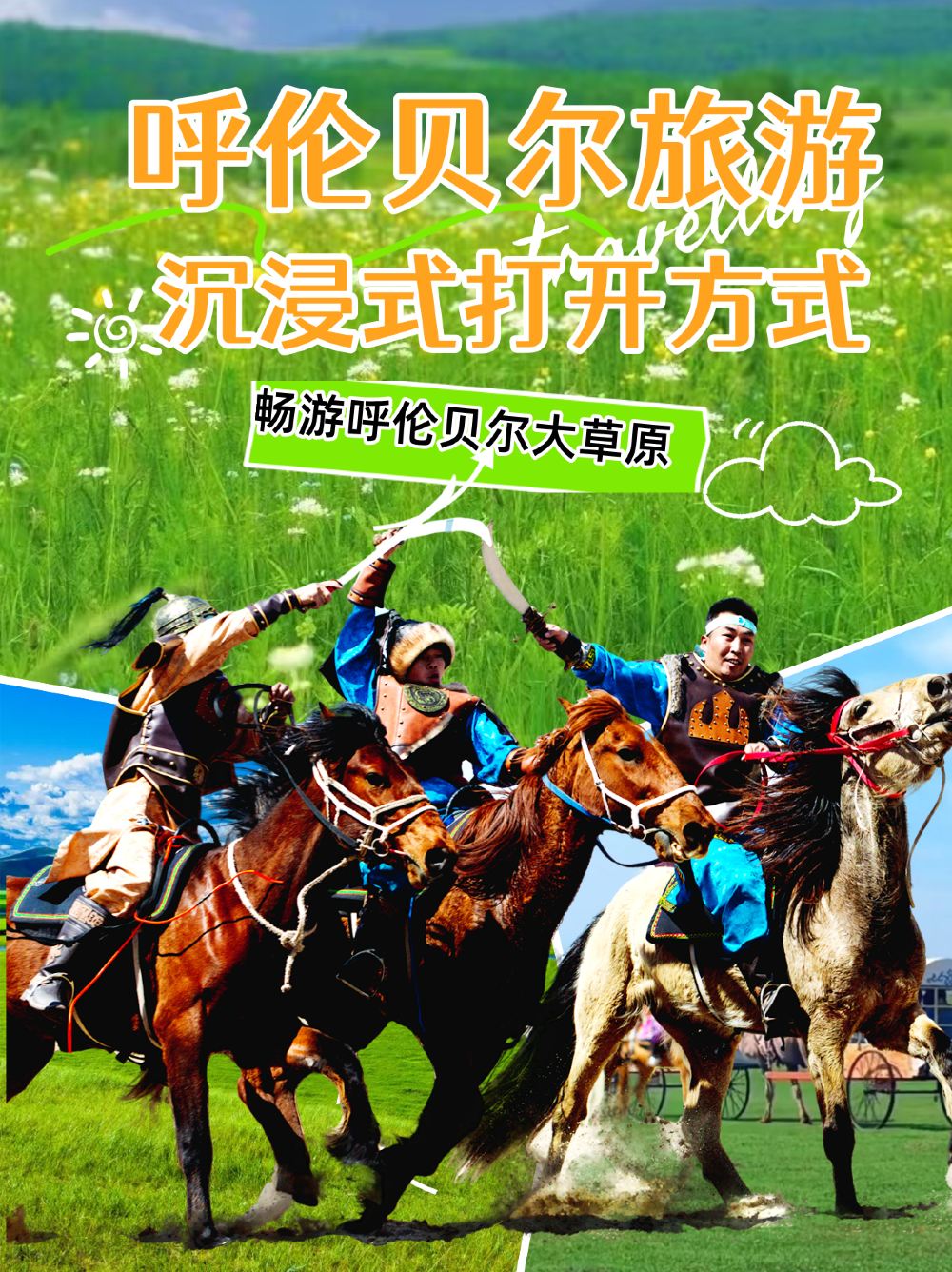 ▲ 我们从满洲里出发呼伦贝尔大草原,蓝天白云下,无边的绿色波浪随风起伏,牛羊成群,构成了一幅生动的草原画卷;乘车观看呼伦贝尔大型马文化实景演艺“马背战歌”它是一场极具民族文化特色的马术表演。此外,蒙古族歌手还会演唱苍凉的草原歌曲,跨上温顺的蒙古马,踩着没过脚踝的酥油草,眼前是望不到边的绿浪。专业马信手把手教你控缰绳。短途溜达看日落,或是策马狂奔任风把烦恼都吹散——这片草原将会是你的天然游乐场;