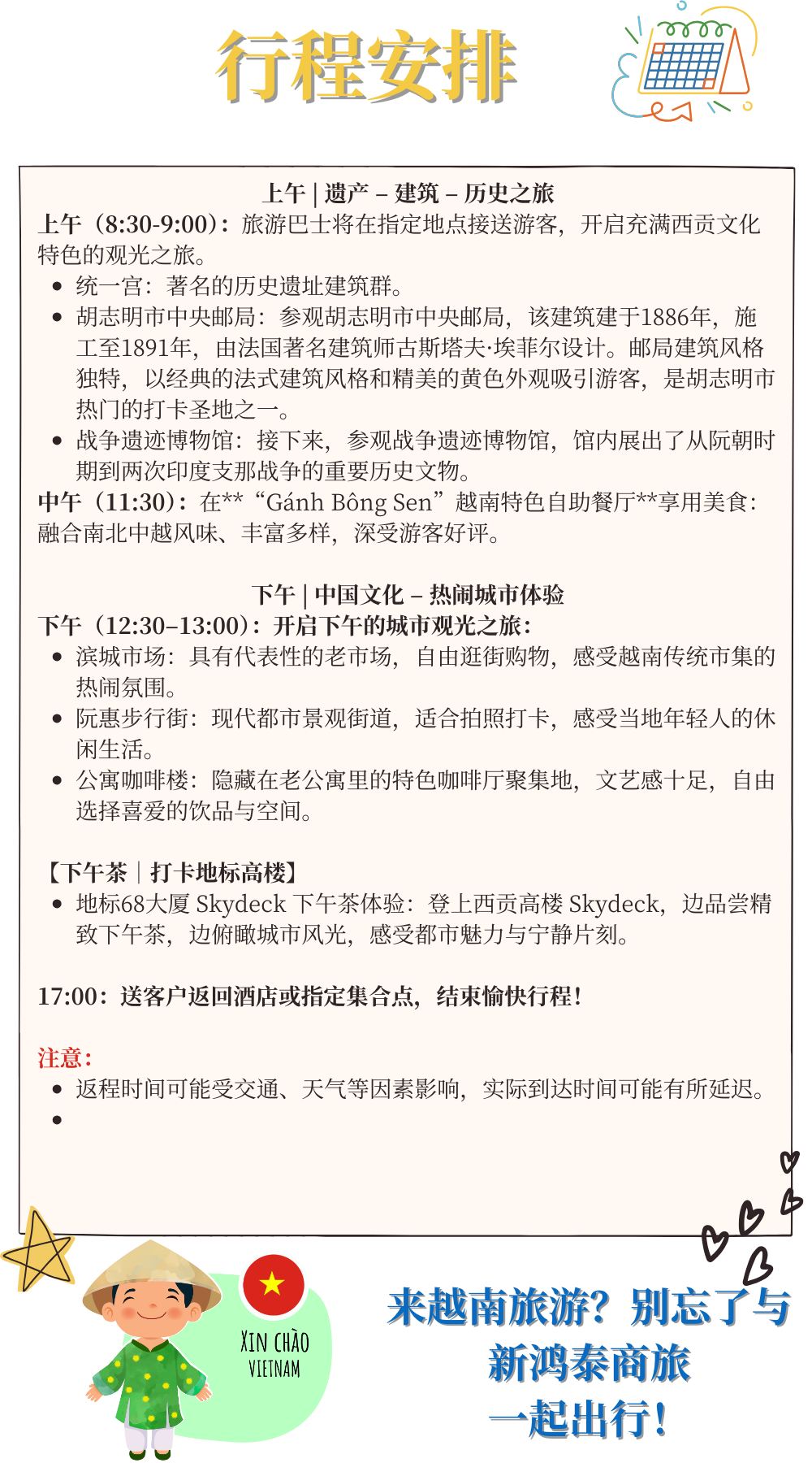 以上是胡志明市一日游的详细介绍,涵盖了胡志明市所有经典景点。
