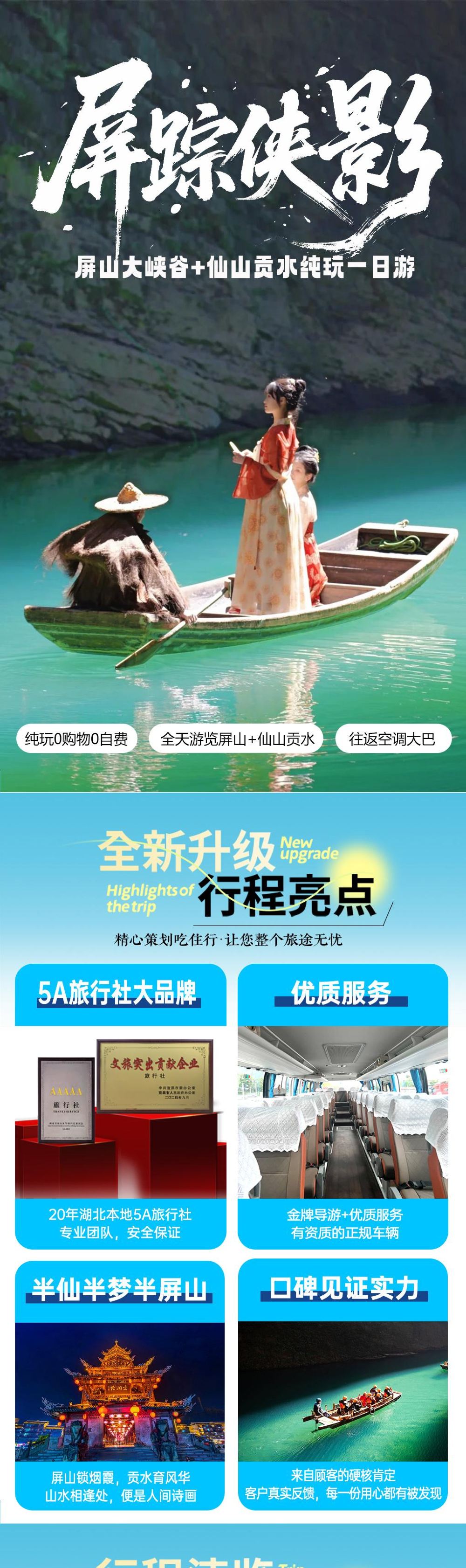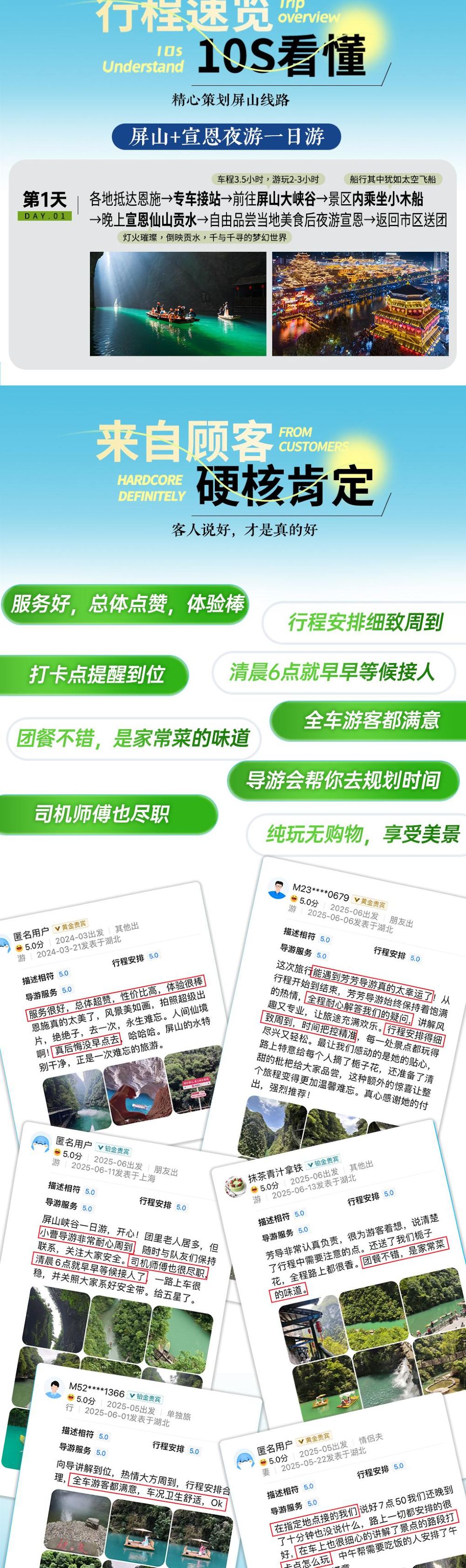 恩施屏山峡谷+宣恩夜游一日游『含屏山门票+单程船票』纯玩团【【匠心独具】恩施火车站/市区内酒店免费上门接送,含景区内必销船票50元/人,感受真正的纯净一日游!】