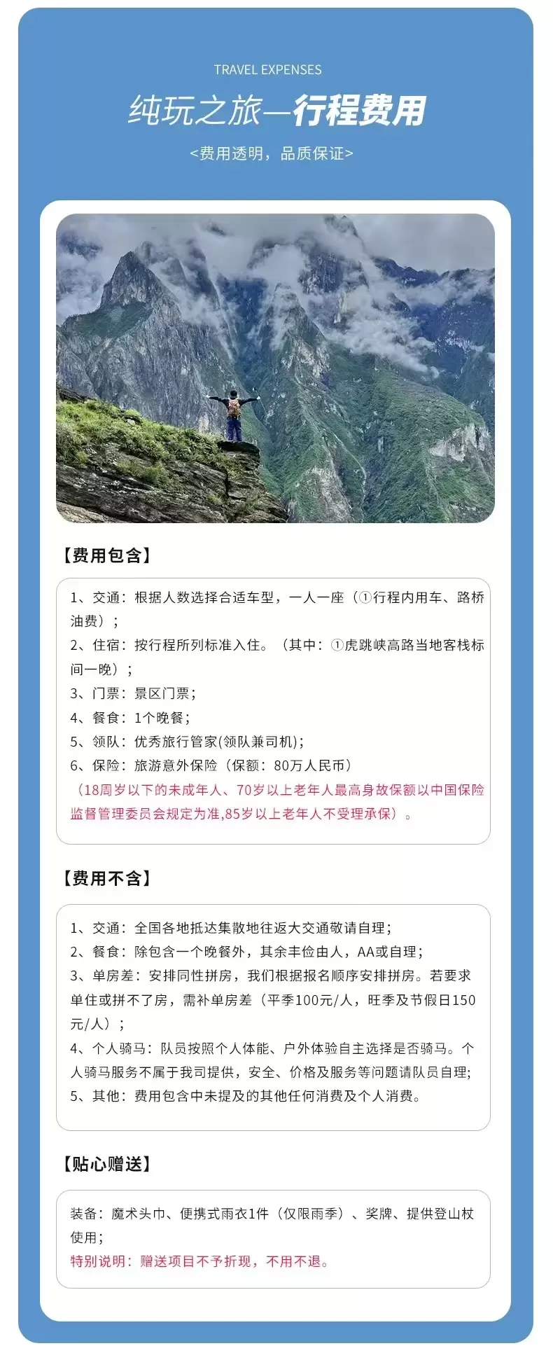 迪庆香格里拉虎跳峡二日游【虎跳峡高路徒步2人起成团纯玩徒步 】