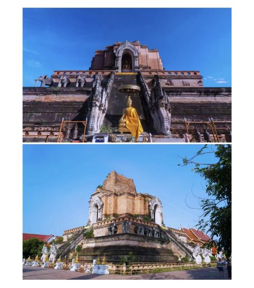 柴迪龙寺始建于1411年,由兰纳王国的萨孟玛王兴建,用于供奉其父的骨灰,因此又称“隆圣骨寺”。柴迪龙寺的主体建筑是一座兰纳式四方形大佛塔,融合了兰纳、印度、斯里兰卡等多种风格