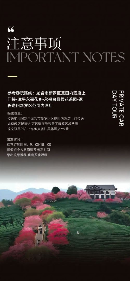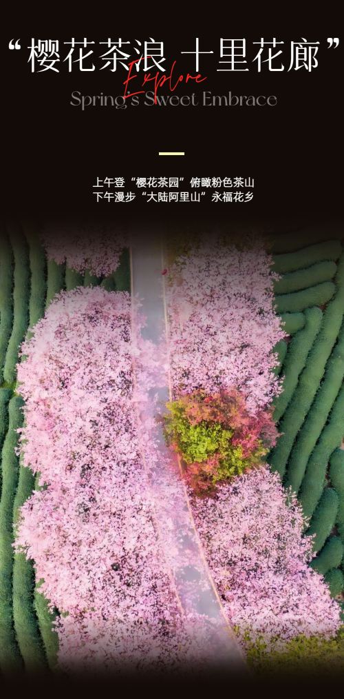 龙岩出发包车9小时一日游|打卡漳平永福花乡+永福台品樱花茶园【专车直达大陆超大高山樱花茶园,漫步粉樱茶垄,尽享独特视觉震撼】