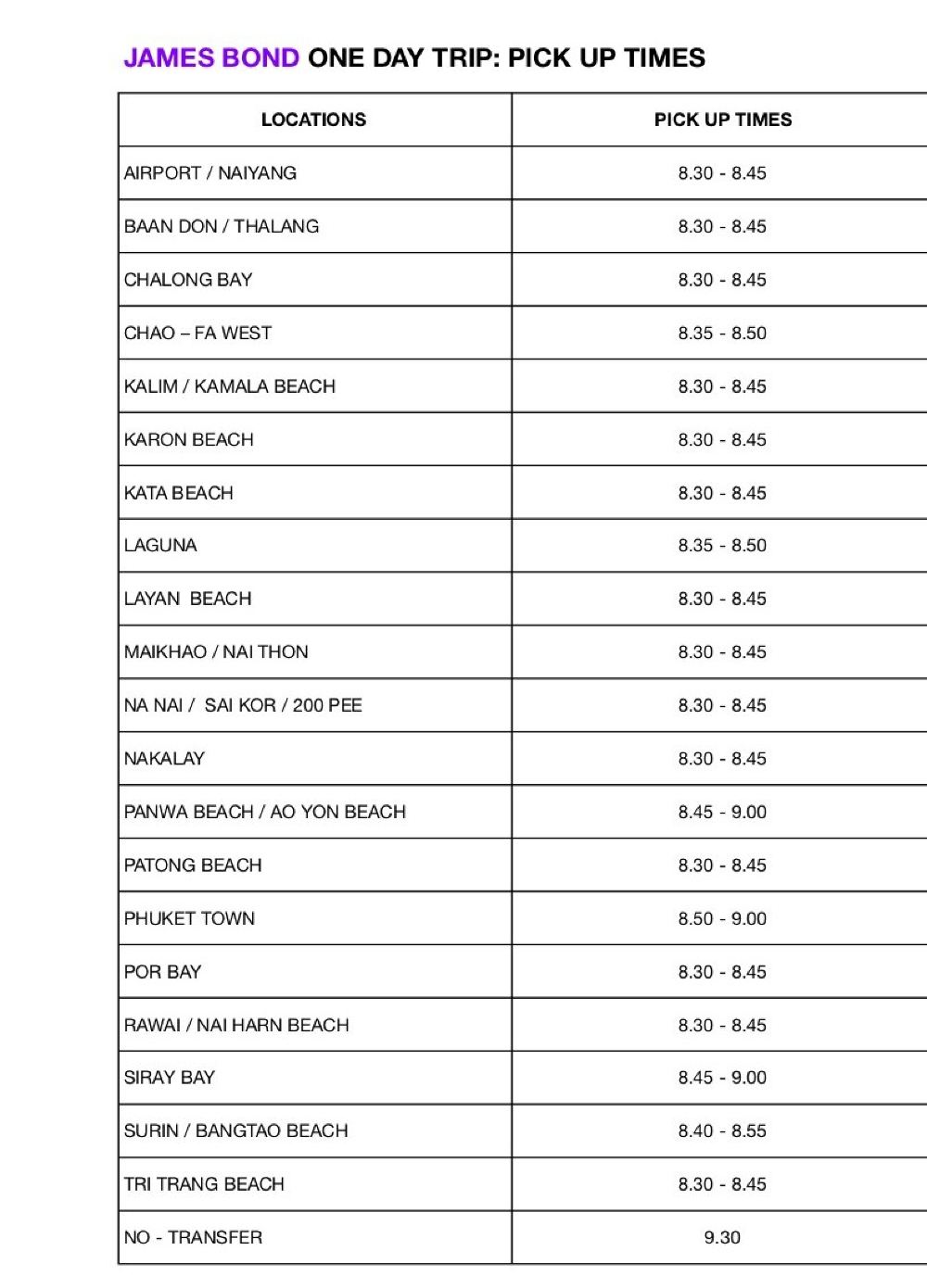 ▼007岛(James Bond Island)&大纳卡岛(Naka Yai Island) & 大朗岛 (Rang Yai Island),普吉岛酒店接驳时间参考