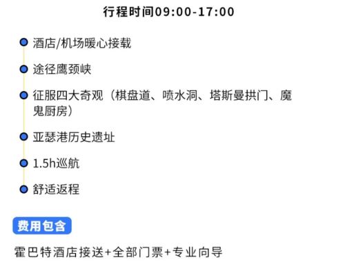 套餐A为亚瑟港一日游,含亚瑟港门票以及船票