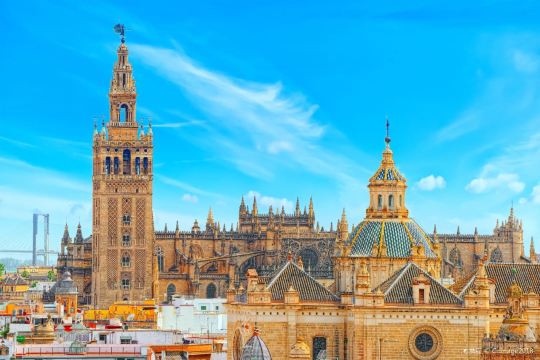 ▲ 塞维利亚大教堂 • 参观塞维利亚举世闻名的宏伟教堂,也是欧洲极具观赏价值的哥特式宗教建筑 • 有机会登上大教堂的吉拉达钟楼塔(Giralda tower),360度纵览城市的安达卢西亚风情 • 教堂内放有哥伦布的灵柩,石棺上有西班牙骑士雕像,仿佛守护着这位美洲新大陆的发现者