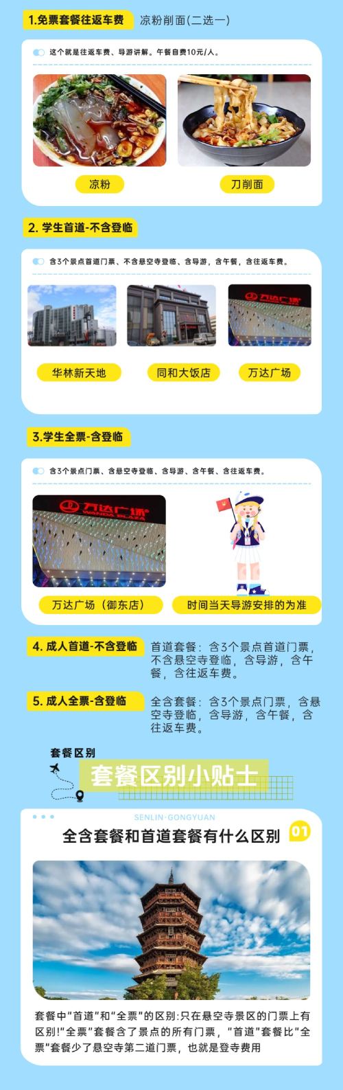 5.悬空寺登临不保证,该线路是否能登临以当天景区实际情况以及导游安排为准!(如有疑问可咨询客服)