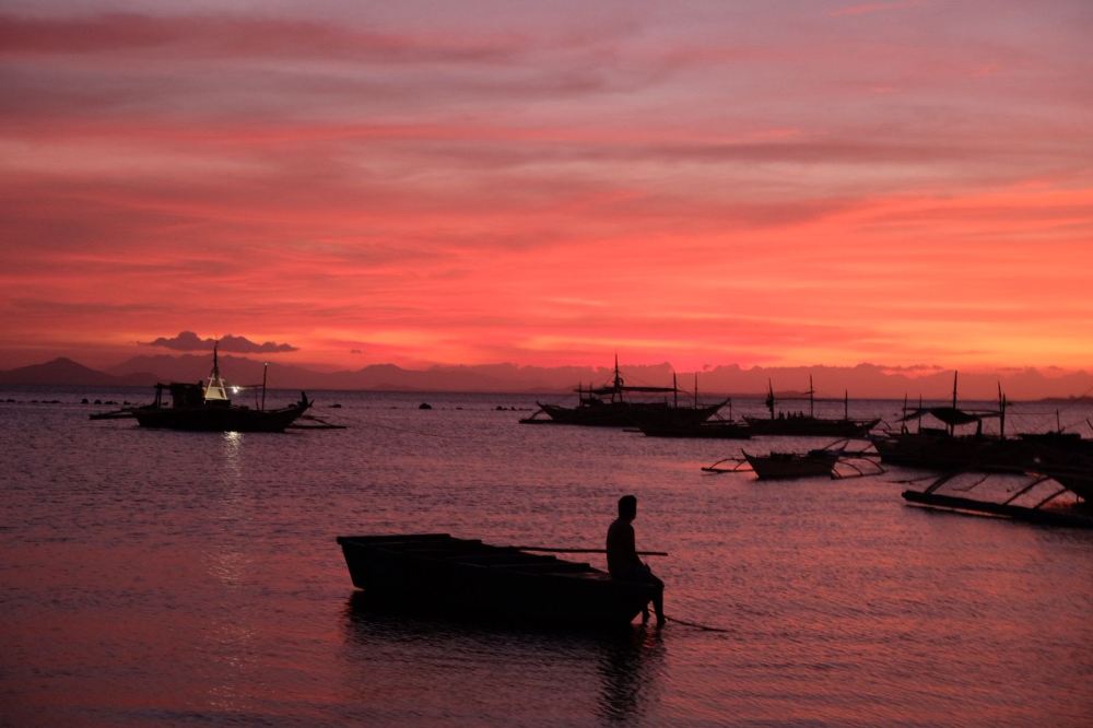 ▲欣赏海上日落的壮丽美景,天空变成红色和粉红色!