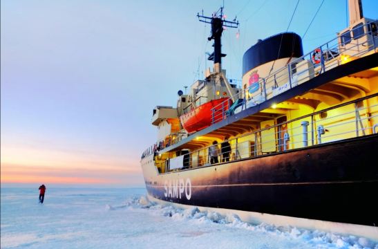 ▲ 【征服北冰洋的魄力体验——破冰船】 行程的核心高潮是登上真实的极地破冰船,随着巨大的钢铁船身碾碎厚厚的海冰,开辟出一条航道。你将感受到自然伟力与人类工程学的震撼碰撞。独特的环节是穿上特制漂浮服,在船侧开辟的冰海中随波漂浮,这种“冰洋沐浴”是全球仅有几处能实现的终极体验。