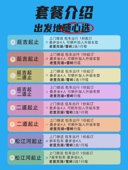 多出发地可选:延吉起止/延吉起二道止/二道起止/松江河起止「起止城市多样」