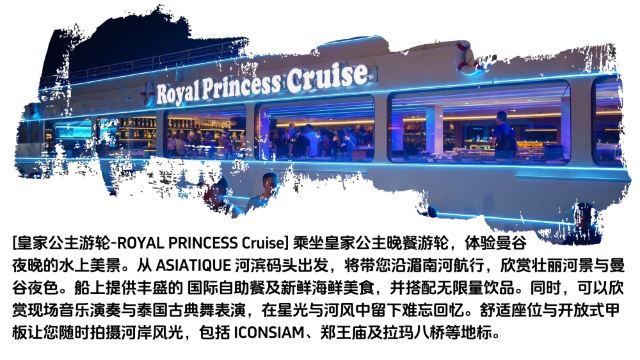 皇家公主号 ROYAL PRINCESS 夜游湄南河【体验2小时湄南河晚餐游船之旅,曼谷首之选。】
